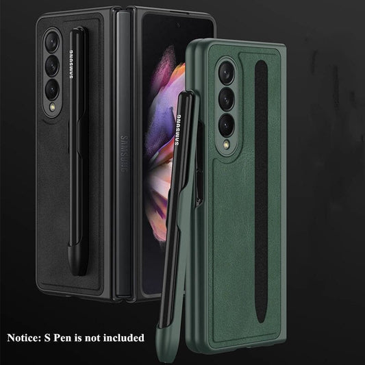 Luxury Folding Pen Slot Leather Case For Samsung Galaxy Z Fold 4